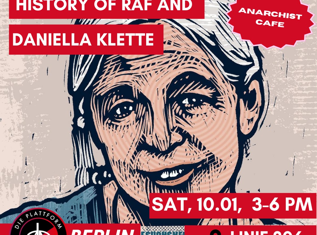 We are pleased that the network Freedom for All Political Prisoners has prepared a presentation for our café, which will focus on Daniela Klette, the history of the RAF, and the repression against the solidarity movement.